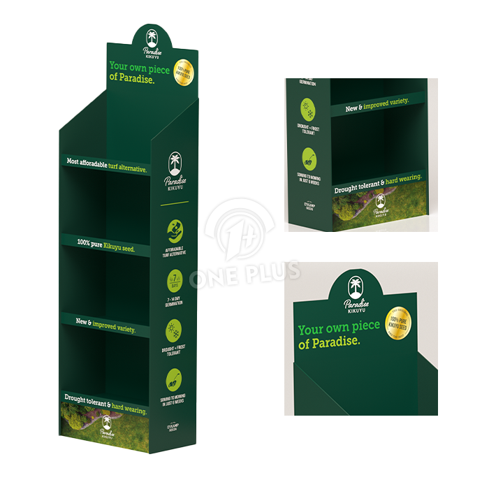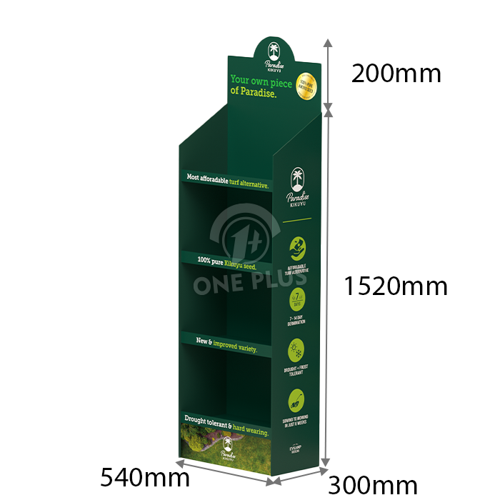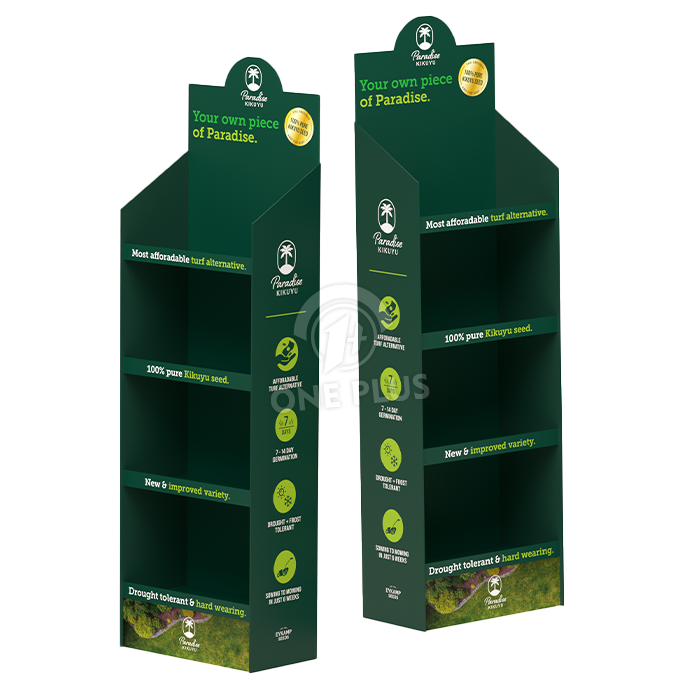 Green in color and spirit. Aligning with the “Organic/Natural” theme, this display is made from 100% recyclable high-strength corrugated cardboard. It uses vegetable-based inks for printing, offering a truly sustainable packaging solution.