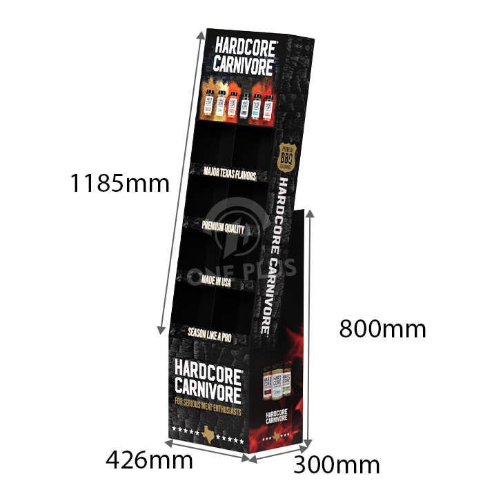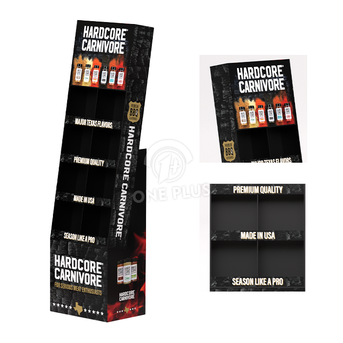 BBQ sauces are heavy. We utilize high-strength corrugated board (EB-flute or double-wall) and reinforce the shelf lips. This ensures the display can support the significant weight of glass bottles without bowing or collapsing.