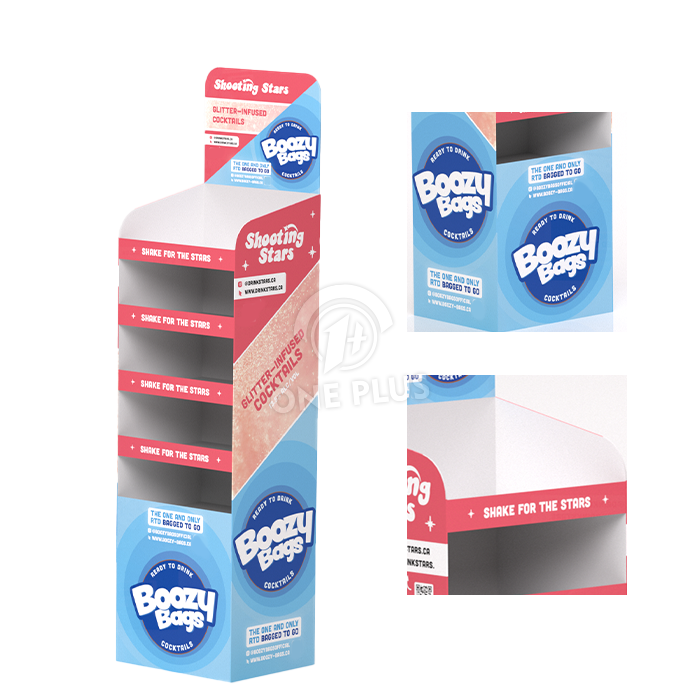 Simplicity meets efficiency. This Cardboard Display utilizes the most popular and reliable retail structure. The 5-tier design maximizes vertical merchandising space, allowing you to display a large volume of cocktail pouches or bottles within a compact footprint.