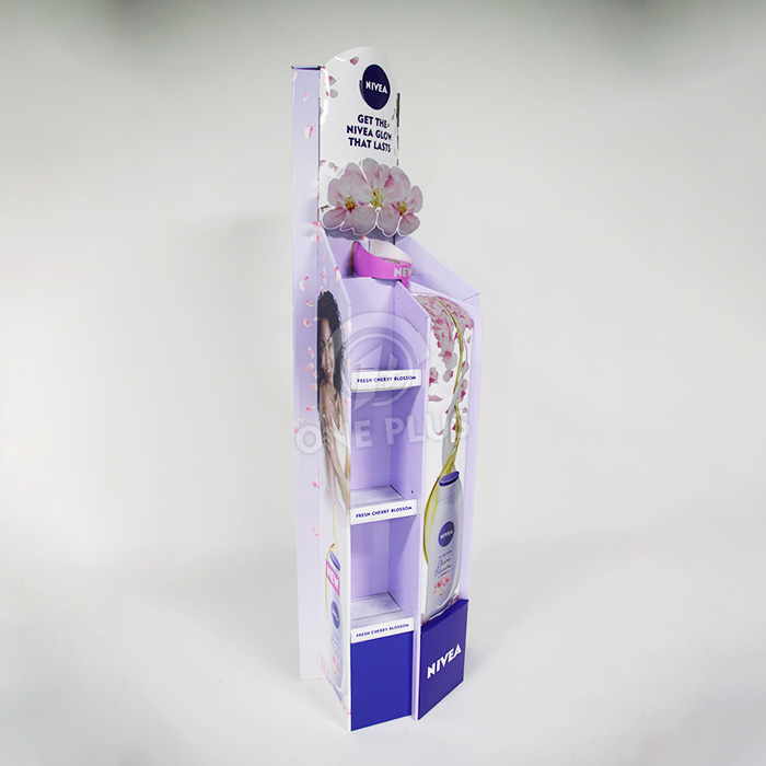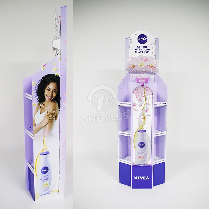 Be the product. This Cardboard Display isn’t just a rack; it’s a giant replica of the NIVEA bottle itself. The curved sides and central graphic panel mimic the product’s silhouette, creating a powerful visual impact that reinforces brand recognition from a distance.