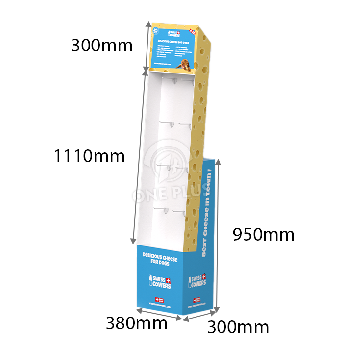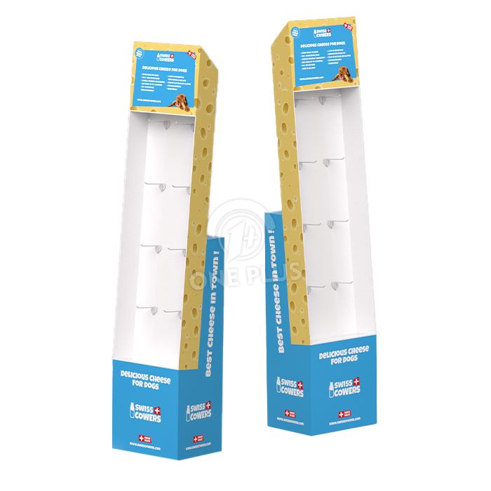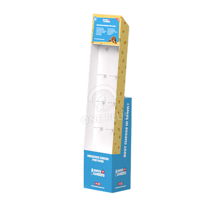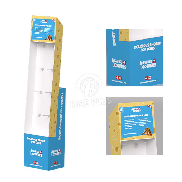 Tell a story. As shown in the “Swiss Cowers” cheese example, we can die-cut the sides to match your theme (like cheese holes!) and print vivid, full-color graphics that resonate with pet lovers. It makes the display a destination, not just a rack.