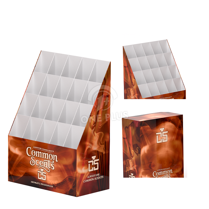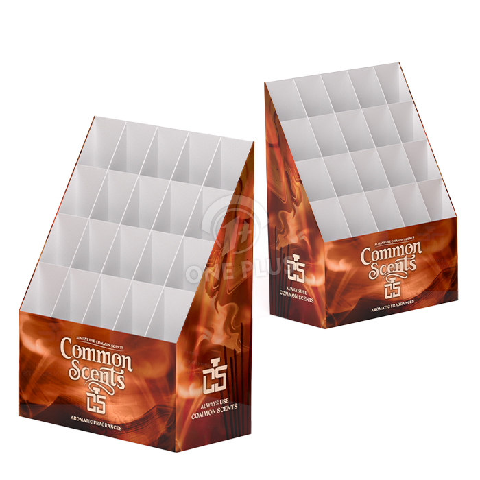 Upright and stable. Incense sticks and reed diffusers often come in tall, thin boxes that tip over easily on flat shelves. This Cardboard Display provides individual support cells that keep these long packages standing straight and looking professional.