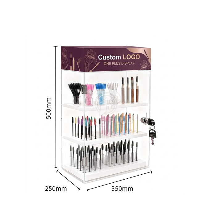 Yes, we can integrate LED light strips under the top header or within the base of this Custom Acrylic Display to brilliantly illuminate your cosmetic tools, especially in dimly lit retail environments.