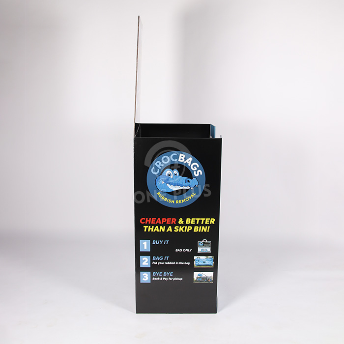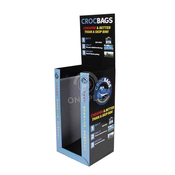 Explain the value. For functional products like specialized waste bags, customers need to know how it works. When you Customize POP Display bins with us, we can print detailed infographics (like the “1-Buy, 2-Bag, 3-Bye” steps) directly on the header and body to guide the purchase decision.