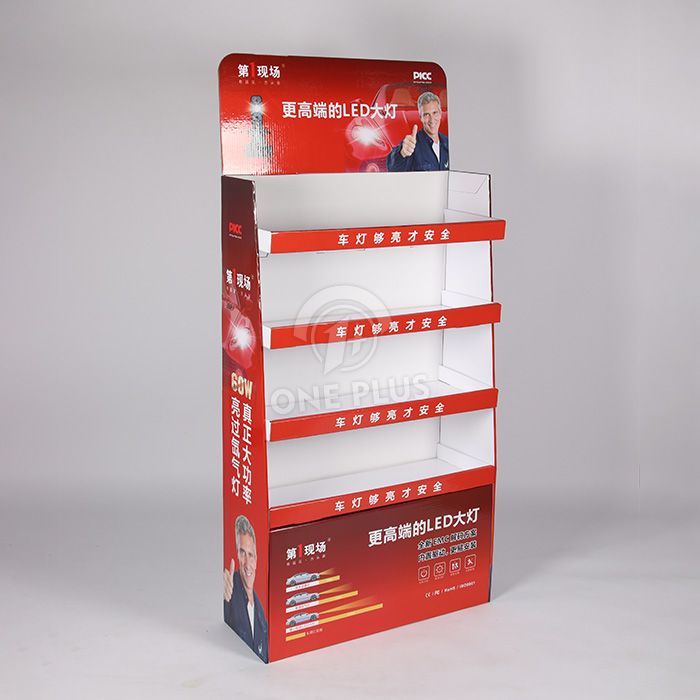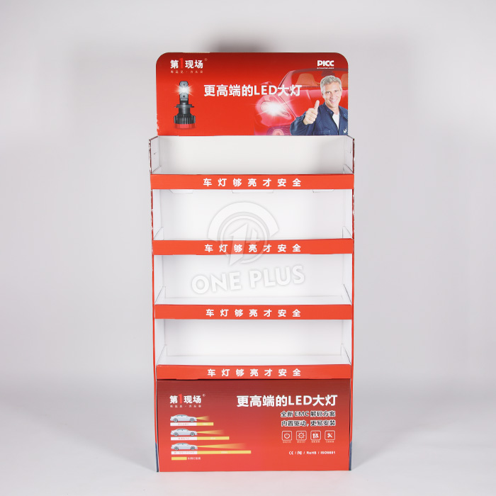 Stand out in a crowded shop. Auto repair shops and accessory stores are often cluttered. When you Customize POP Display units with vibrant colors (like the red theme shown) and a tall header card, you create a focal point that draws customers’ attention directly to your high-margin lighting products.