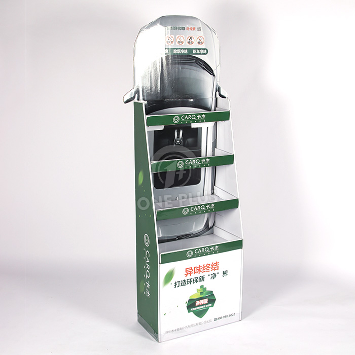 Built for bottles. Car care products like sprays and glass perfumes can be heavy. We use high-strength B-flute or EB-flute corrugated board to ensure each of the 4 shelves can support the weight without bowing, keeping your presentation professional.