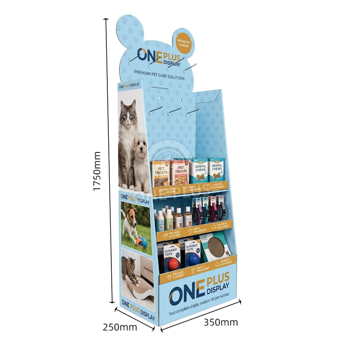 Built for the busy pet aisle. As an expert POP/POS display stand manufacturer, we construct this FLOOR DISPLAY using high-strength corrugated cardboard. We carefully calculate the load-bearing capacity of both the peg hooks and the shelves to ensure your POP Display remains stable and secure in high-traffic retail environments.