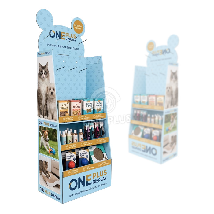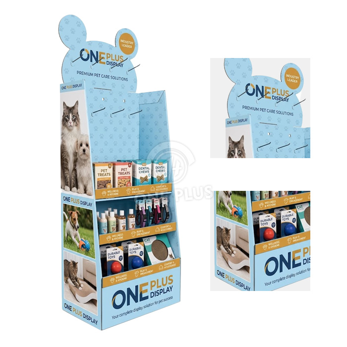 Engage your target audience instantly. To resonate with pet lovers, the top header board is custom die-cut into adorable animal ears. This creative 3D structural element acts as an emotional hook in the retail aisle, drawing shoppers directly to your brand over competitors.