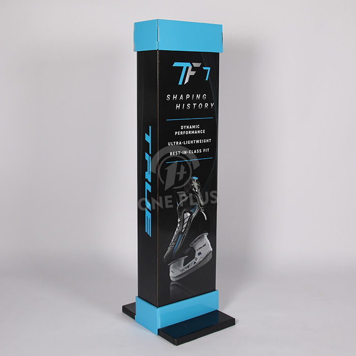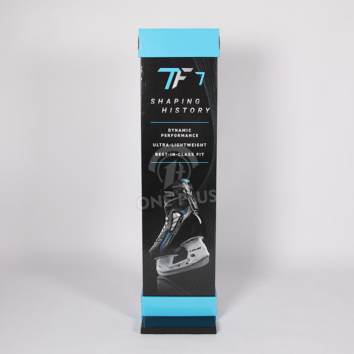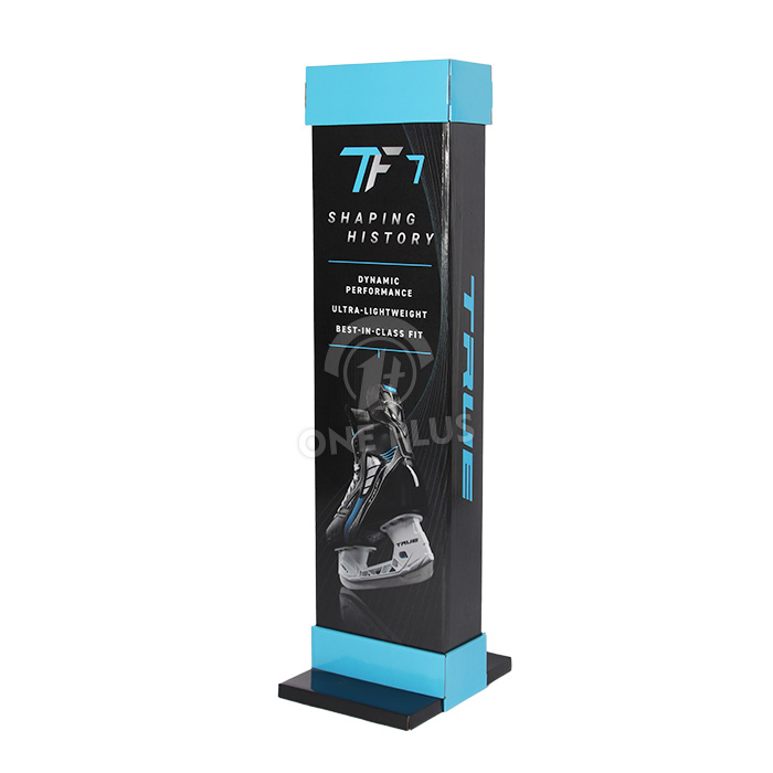 Be seen from every angle. This totem features four vertical panels. Whether you print the same logo on all sides or tell a continuous story (like the “Shaping History” skate features shown), this Custom Cardboard Display ensures your message captures attention from every walkway in the store.