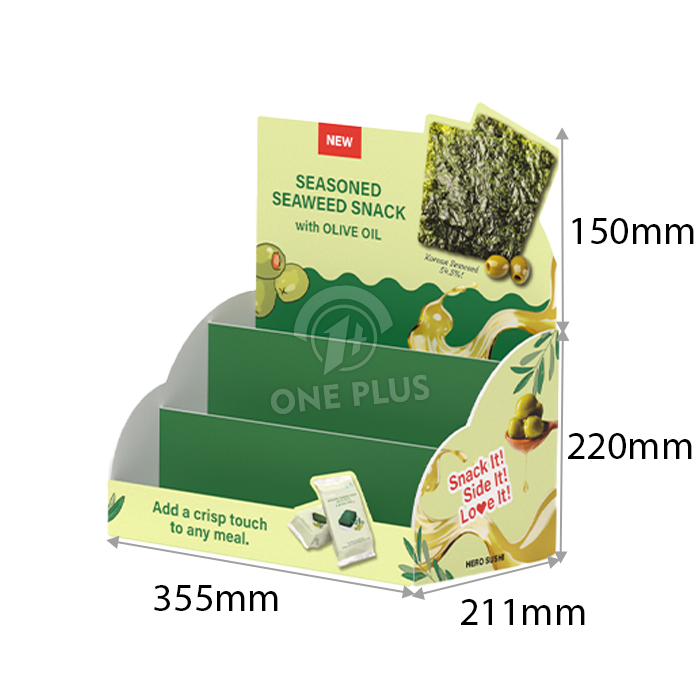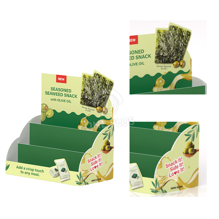 Die große Rückwand bietet reichlich Platz für kundenspezifische, hochauflösende Grafiken (wie das Algendesign), was diesen EINZELHANDELSPRÄSENTATIONSSTÄNDER zu einer effektiven Werbepräsentationseinheit macht .