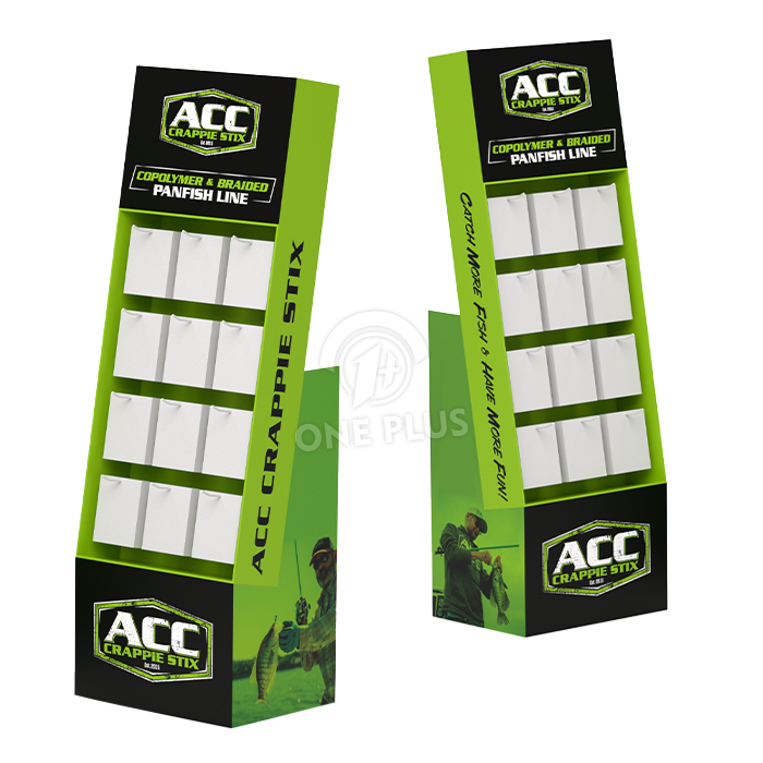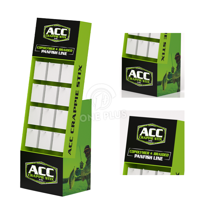 Die standardmäßigen Kunststoffhaken an diesem Karton-展示架 können pro Haken ca. 1-2 kg tragen . Für schwerere Artikel empfehlen wir ein Upgrade auf Metallhaken und eine verstärkte Rückwand .