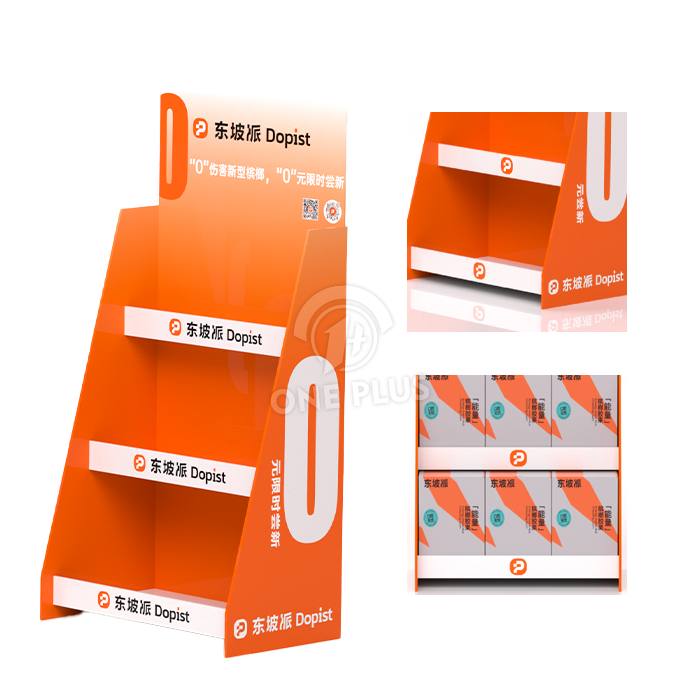 A diferencia de las muestras de caja estándar, esta Muestra de Mostrador de Cartón presenta una estructura trapezoidal de 3 niveles. Esta disposición de “asientos de estadio” asegura que los paquetes de nuez de betel o snacks en los estantes traseros sean tan visibles como los del frente.