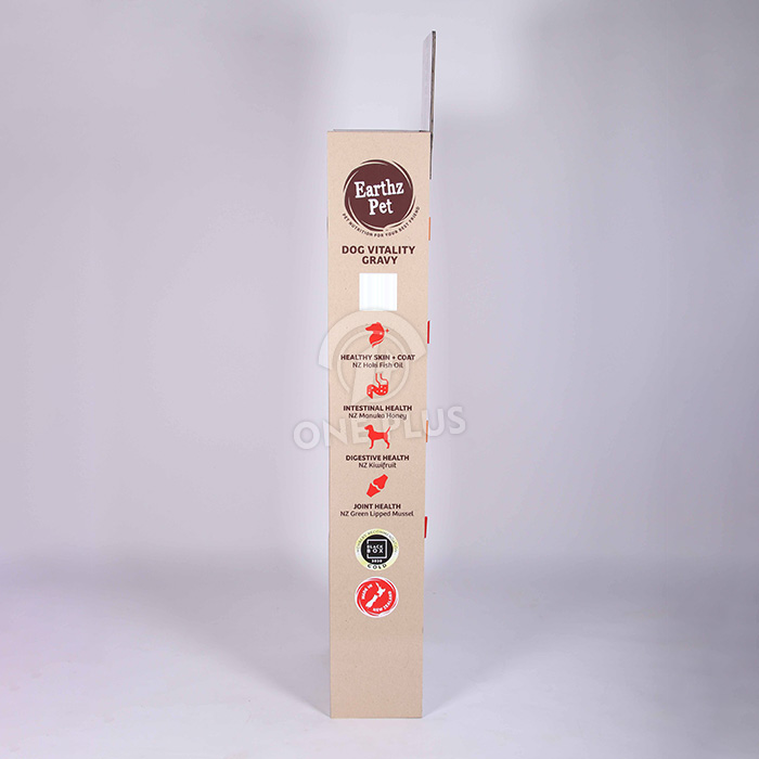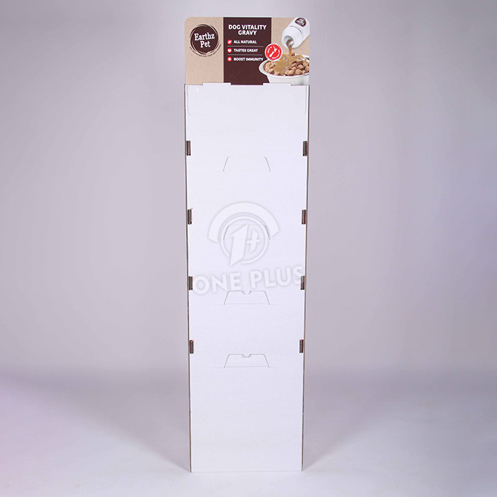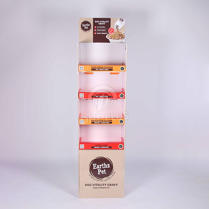 Maksimoi vähittäiskaupan tila. Tämä räätälöity pahvinäyttö sisältää neljä tilavaa hyllyä, jotka tarjoavat runsaasti tilaa erilaisten koiran elinvoimaisuuskastikkeiden tai kissanruokapussien järjestämiseen, pitäen varastosi siistinä ja helposti saatavilla.