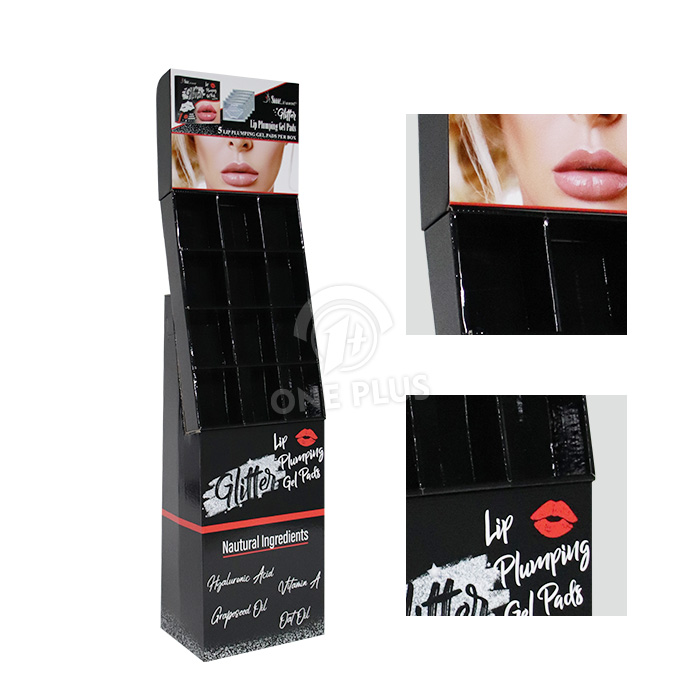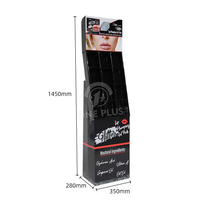 Nous proposons une personnalisation complète. Le grand panneau arrière offre une toile idéale pour des graphiques haute résolution, faisant de cette unité un présentoir en carton personnalisé efficace pour renforcer la marque cosmétique.