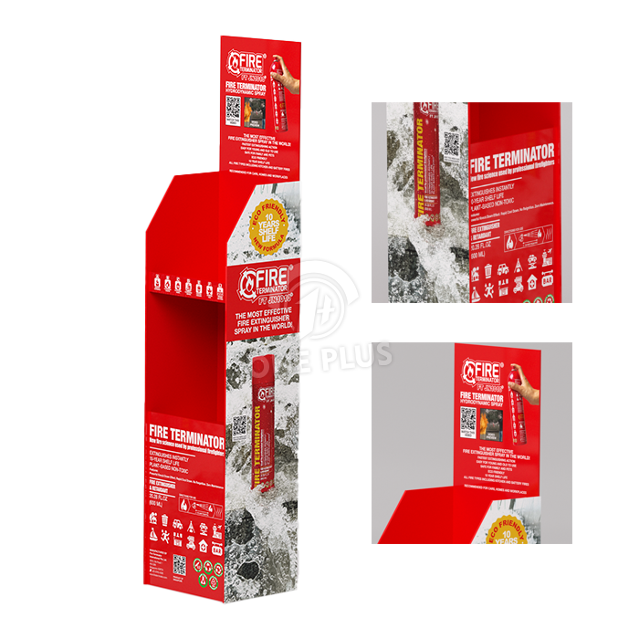 Conçu avec une palette de couleurs rouge vif typique des équipements de sécurité incendie, ce présentoir PRÉSENTOIR AU SOL attire l'attention dans tout environnement de vente au détail, garantissant que vos produits de sécurité ne passent pas inaperçus.