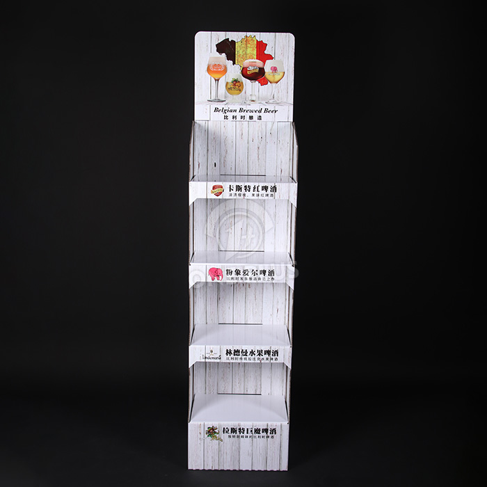 Ya, kami menggunakan papan bergelombang yang diperkuat dan dapat menambahkan batang penyangga logam di bawah rak untuk memastikan berat botol bir tertahan dengan aman