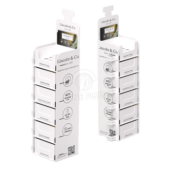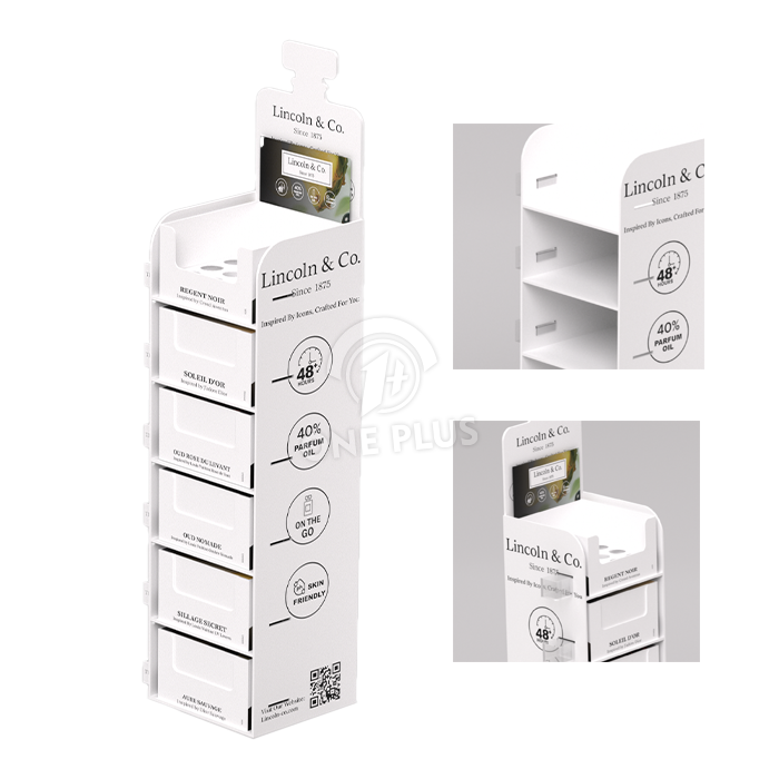 Le scatole PDQ interne presentano inserti fustellati su misura con fori, garantendo che bottiglie di vetro come oli essenziali, sieri o liquidi per sigaretta elettronica siano tenute saldamente in posizione verticale, minimizzando le rotture e mantenendo l'Espositore Cosmetica ordinato.