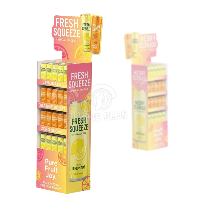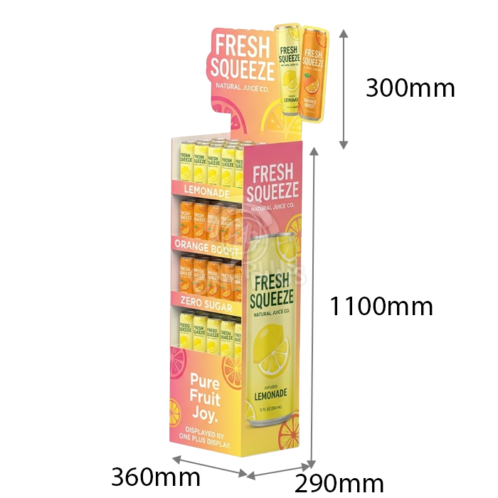 For drikkedisplayer anbefaler vi på det sterkeste å tilsetne en klar PVC-bunnbrett eller plastføtter (valgfrie tilbehør) for å løfte pappen fra gulvet og beskytte den mot fuktighet.