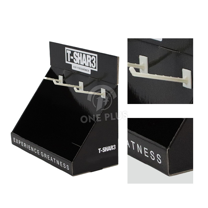 De geïntegreerde plastic haken transformeren het achterpaneel in een compact PEGBORD DISPLAY en Haakdisplay systeem, wat flexibele presentatie van accessoires en verpakte impulsgoederen mogelijk maakt.