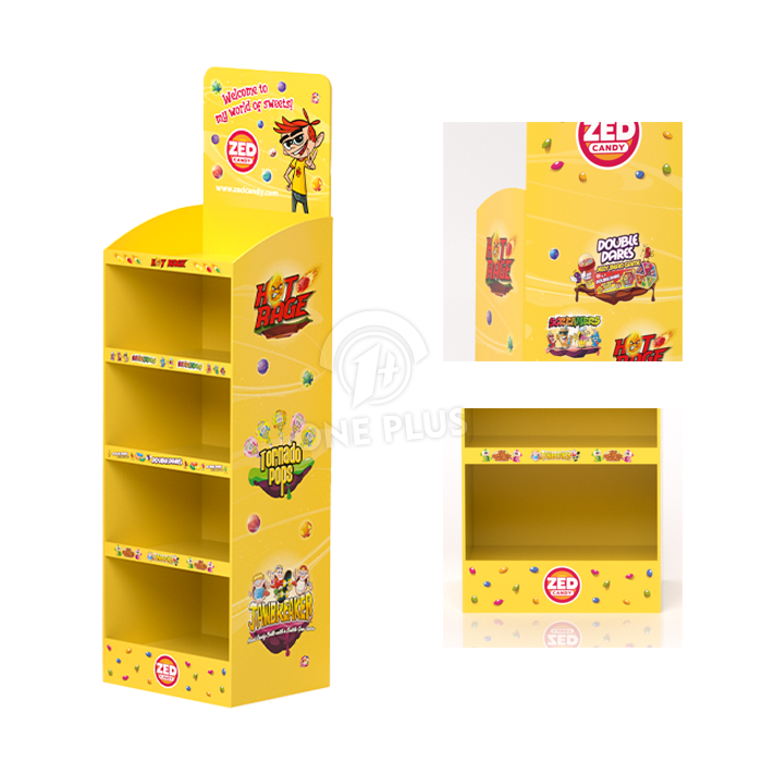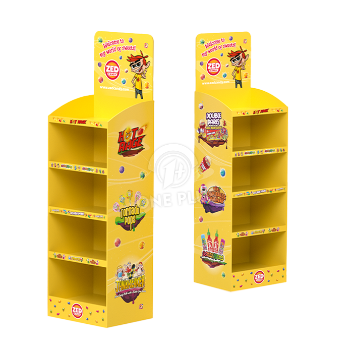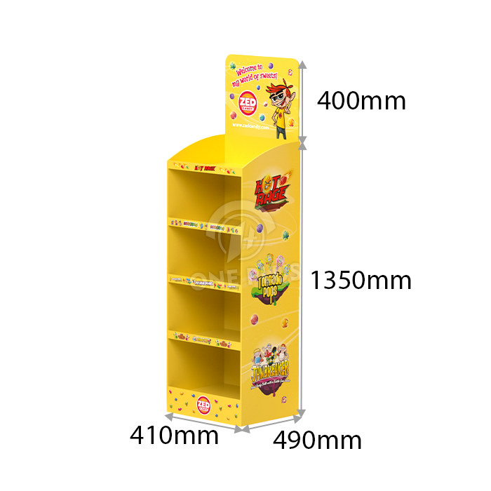 Como um proeminente expositor de chão, esta estrutura está idealmente posicionada para maximizar a visibilidade e impulsionar compras por impulso de doces, snacks e outros itens alimentares promocionais.