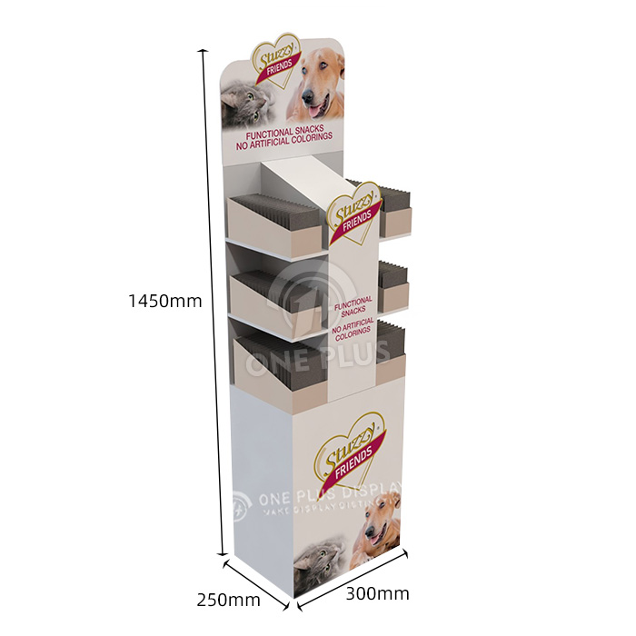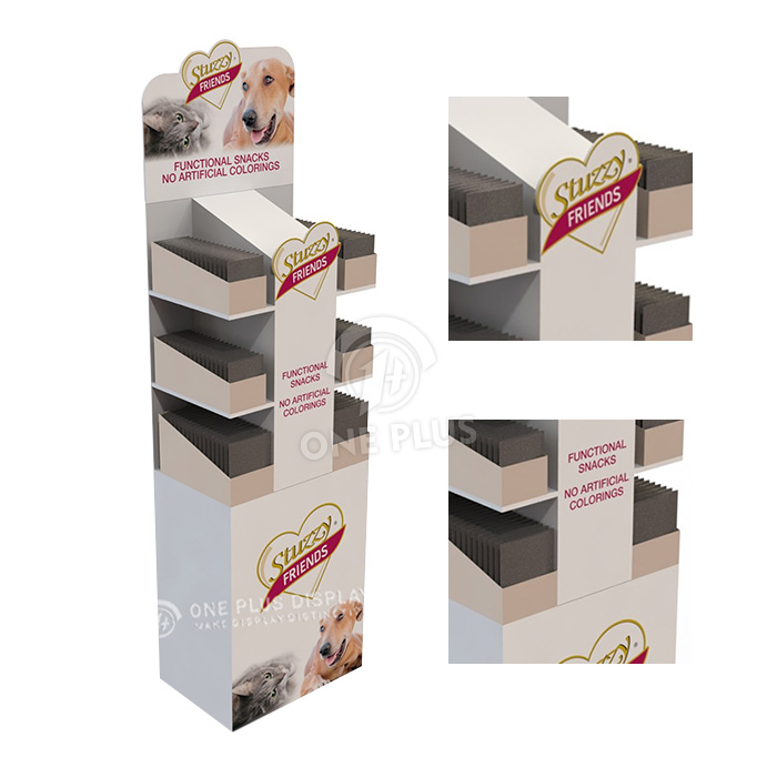 В отличие от стандартных стоек, эта НАПОЛЬНЫЙ ДИСПЛЕЙ усилена высокопрочным гофрокартоном и внутренними опорными планками . Она разработана, чтобы выдерживать значительный вес пакетов сухого корма для собак и консервированного влажного корма без провисания .