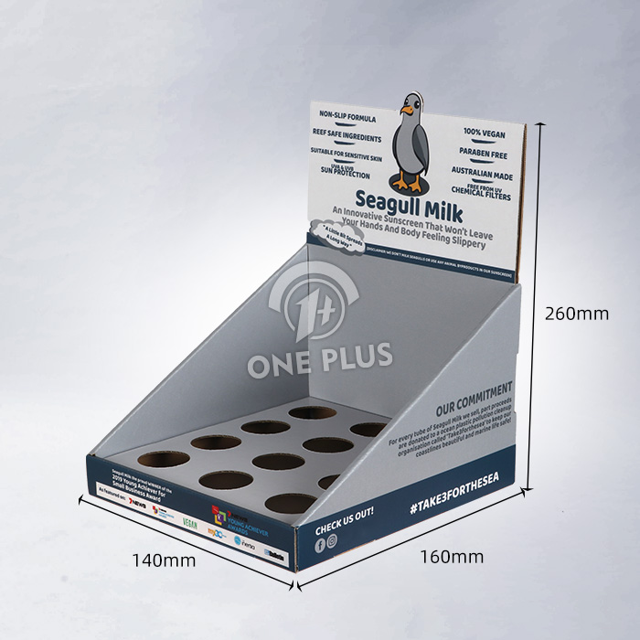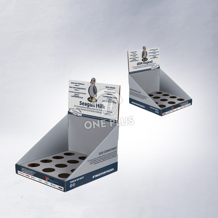 这款定制纸板收银台展示架特别适合高流转率的化妆品促销活动。