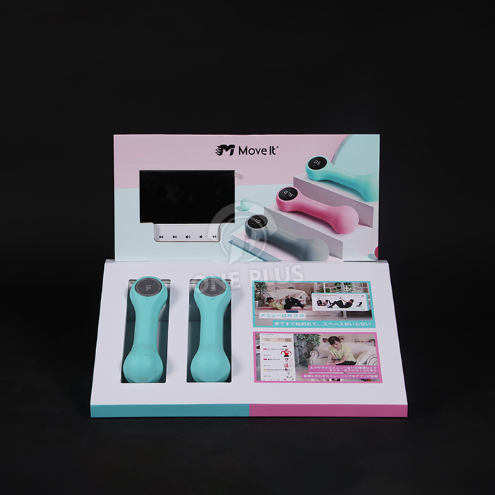 货架上的数字故事讲述。我们将高质量的 LED 或 LCD 媒体播放器直接嵌入到背部顶部面板中。这使您可以播放教学视频,演示智能哑铃如何与移动应用程序同步,从而有效地将路过的购物者转化为了解产品的买家。
