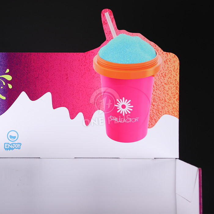 抓住季节. 正如“Chill Factor”设计所示,我们专注于高影响力图形. 我们使用光面覆膜使霓虹色彩和渐变效果脱颖而出,营造出清爽的“酷”氛围,吸引寻找夏季饮品的顾客.