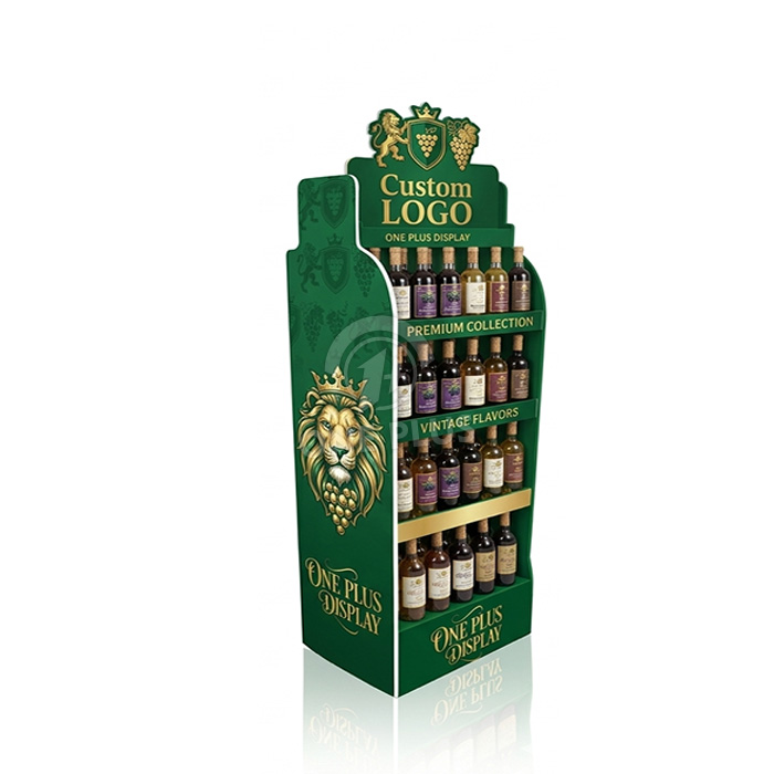 定制纸板展示架采用优雅的弧形侧面板,可保护瓶颈,同时在店内提供精致的轮廓.